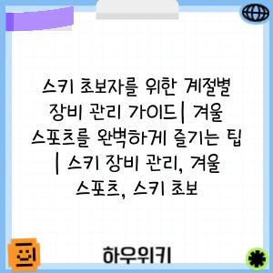 본 글은 스키 초보자를 위해 계절별 스키 장비 관리를 쉽고 명확하게 안내합니다. 겨울 스포츠를 처음 접하는 분들도 걱정하지 마세요. 이 가이드를 통해 스키 장비 관리의 기본을 배우고, 잊지 못할 스키 경험을 만들어보세요!